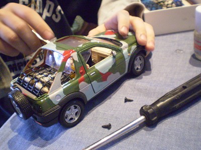 ...jako předposlední krok jsme nalepili okna a auto jsme zkompletovali...